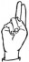 На ћирилици написано НИНА ГРАБОВЧИЋ састоји се из 13 слова [?]. Исписано ћириличном једноручном азбуком за глувонеме: